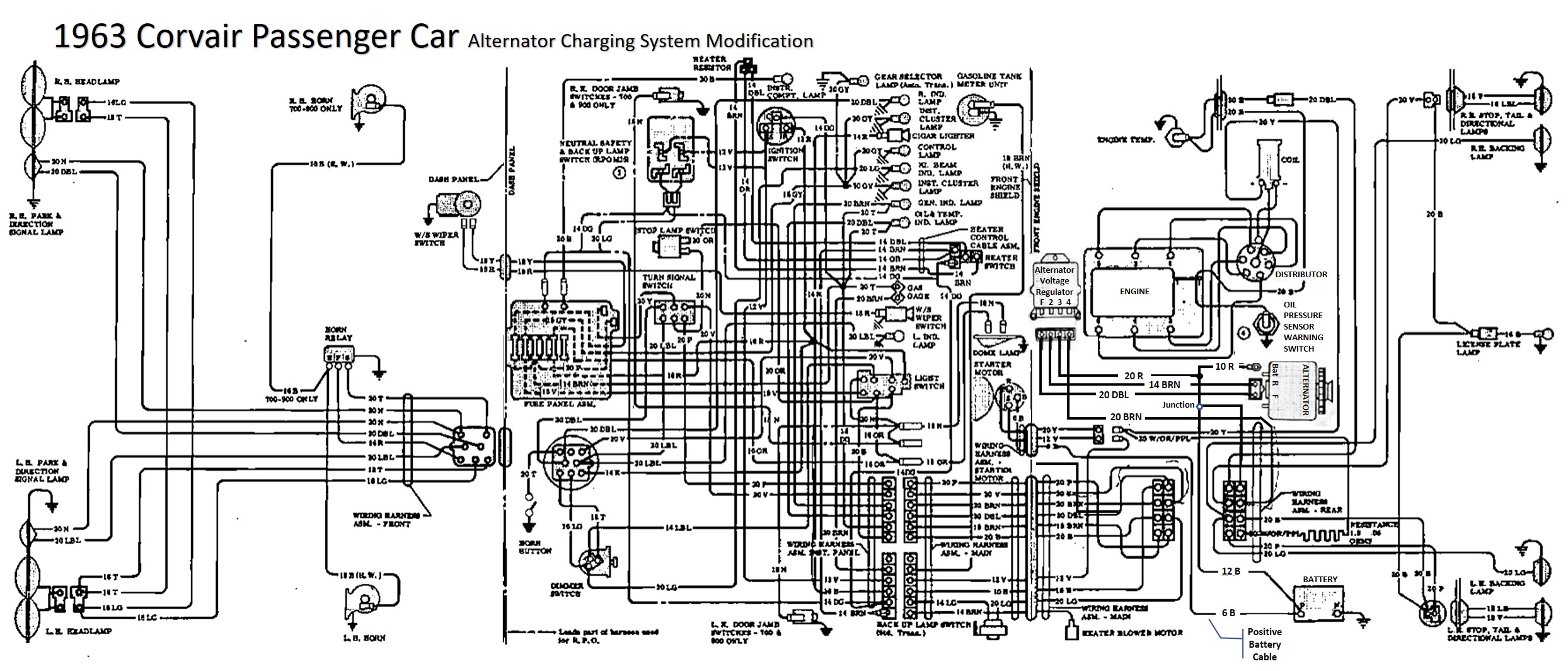 1964 Corvair Passenger Car Schematic with Alternator Mod